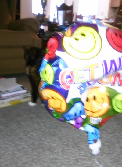 She brought me this neat thing to play with, but it isn’t the same as having Mom in her chair, where she belongs.