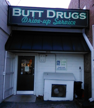 Yes, it’s real. This is my pharmacy, y’all. It’s a great pharmacy, established in 1952; third-generation family owned, great service, competitive prices, genuinely friendly — a real hometown treasure. Plus: it has a funny name and they decided to make the most of it.