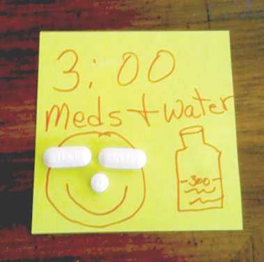 She was forgetting them, even when I called to remind her. So we came up with this, which, plus a call just before 3:00, seems to be doing the trick.